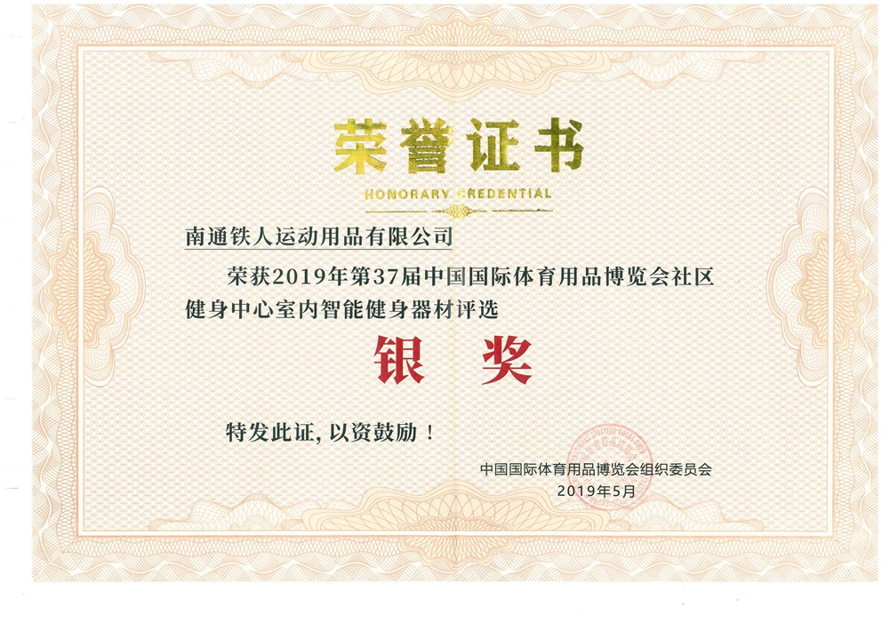 | 2019 | 2019體博會室內智能健身器材銀獎 | 中國國際體育用品博覽會組委會 |